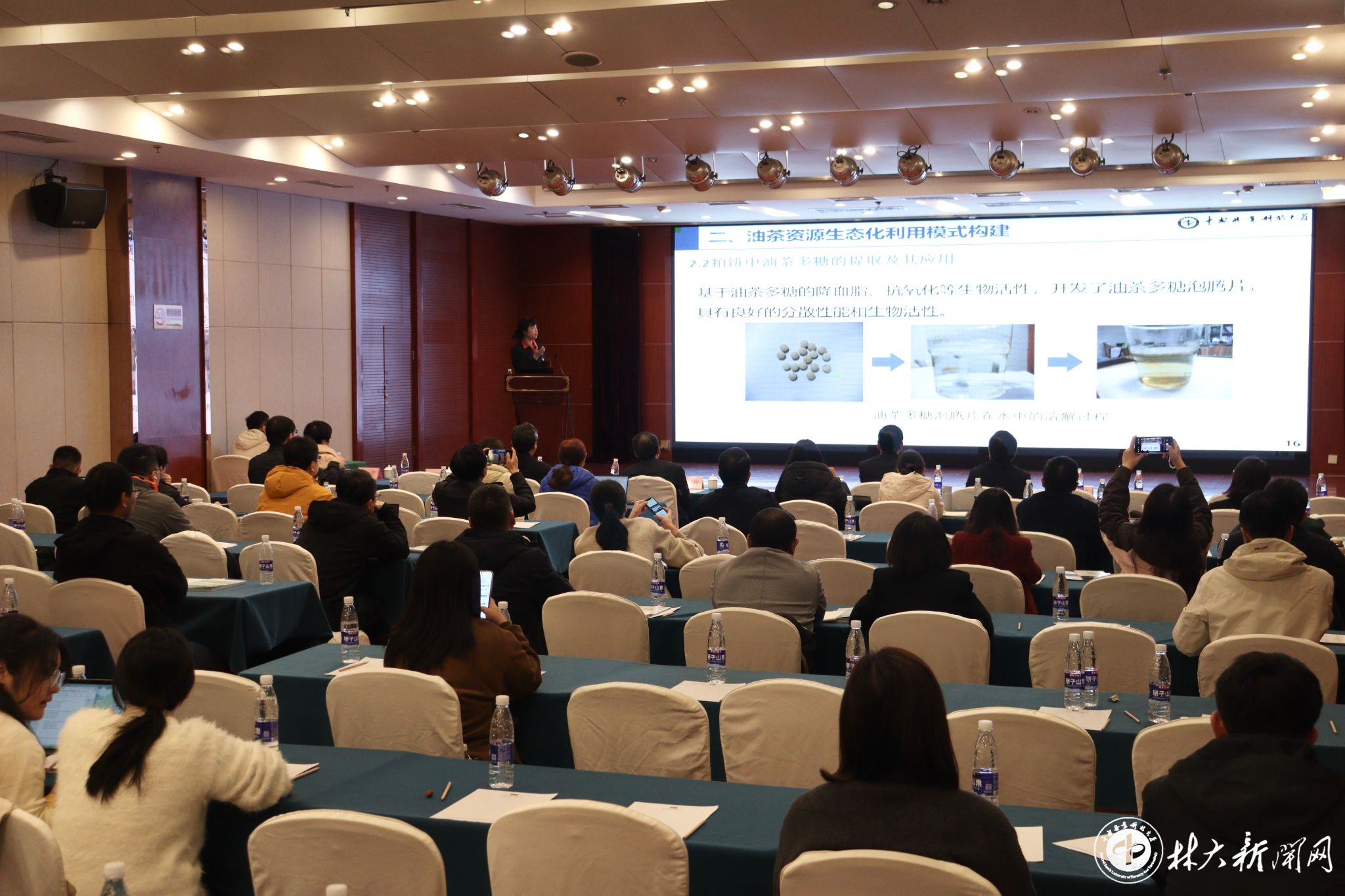 在林源生物制造分会场,李湘洲围绕“林木资源高效利用”主题,作“特色林源植物资源生态化利用模式:解锁高效、高值化利用新途径”的特邀报告。在由我校“木本油料资源高效利用国家重点实验室”承办的木本油料分会场,她围绕“木本油料创新利用”,作“木本油料资源生态化利用模式构建——以油茶、山苍子等资源为例”的特邀报告。